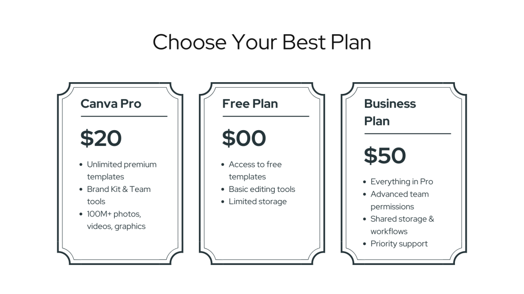 Canva Pro provides access to design blogs, creative tips, and real-world examples to inspire your work. Learn best practices for social media design, marketing visuals, presentations, and branding. This content helps users stay updated with design trends and create content that stands out.